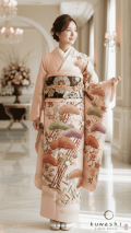 「 80005 シェルピンク松橘地紋正絹振袖袋帯セット 」