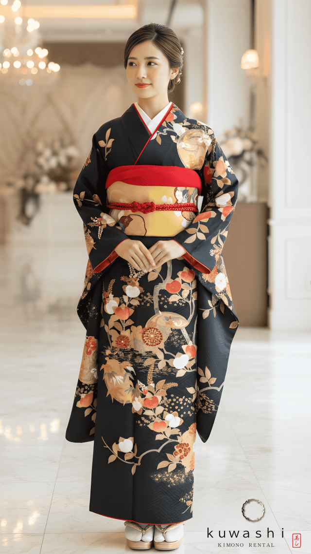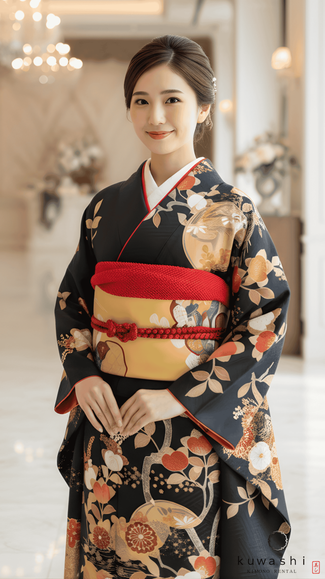 「 80033 黒地金橘地紋正絹振袖袋帯セット 」